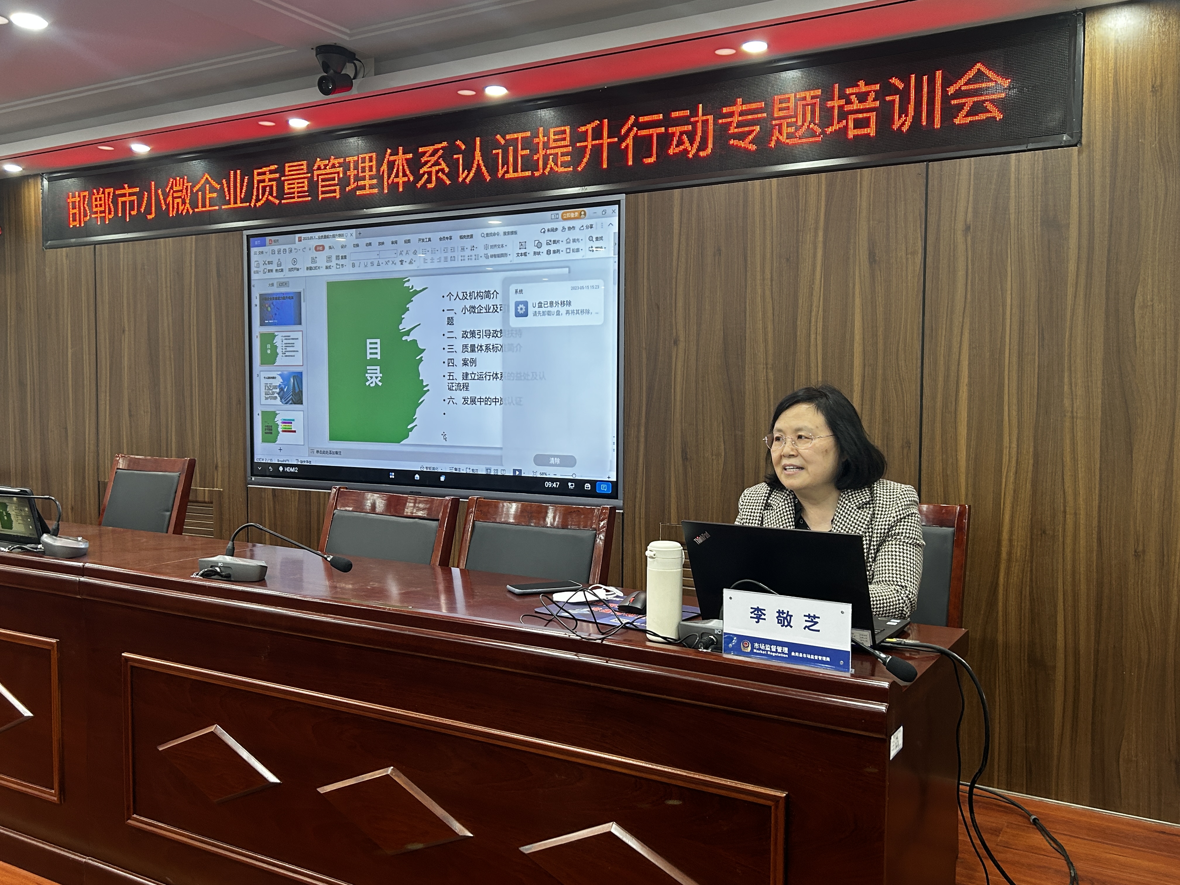 培训会上河北中岚认证有限公司李敬芝专家精心授课,讲解了小微企业的分类、政策引导和政策扶持,质量管理体系标准及案例以及小微企业建立质量管理体系的意义及认证流程等内容。