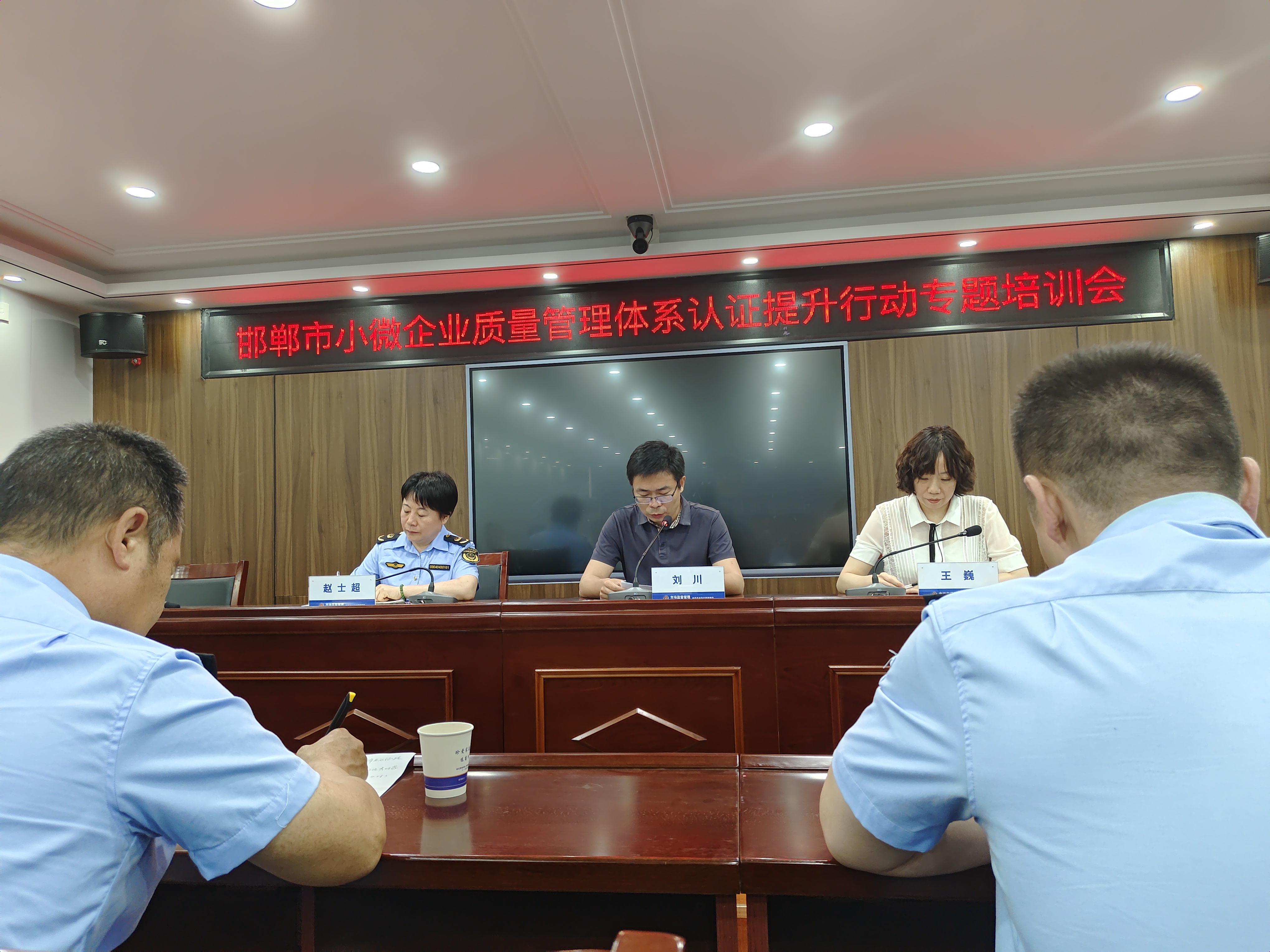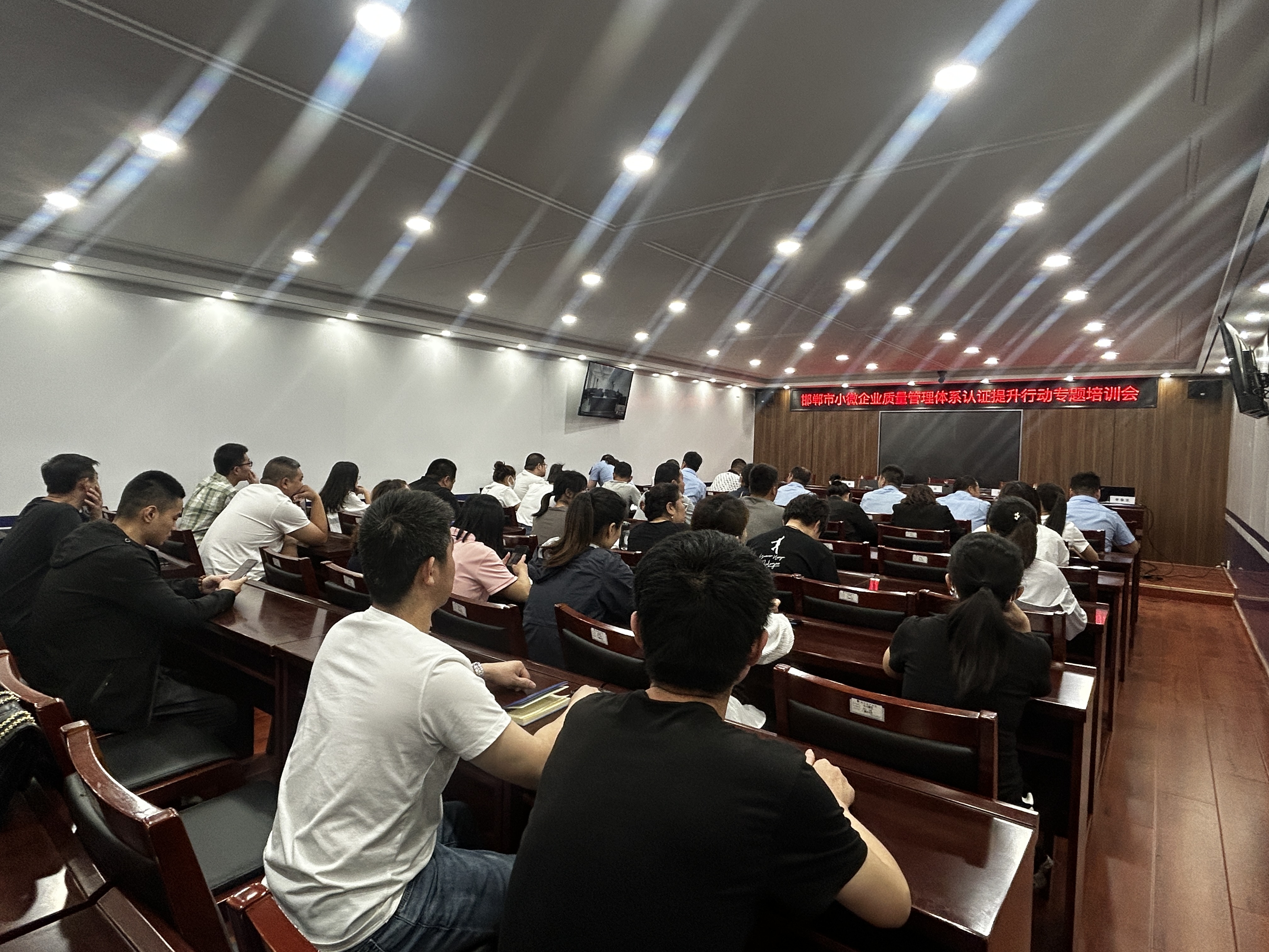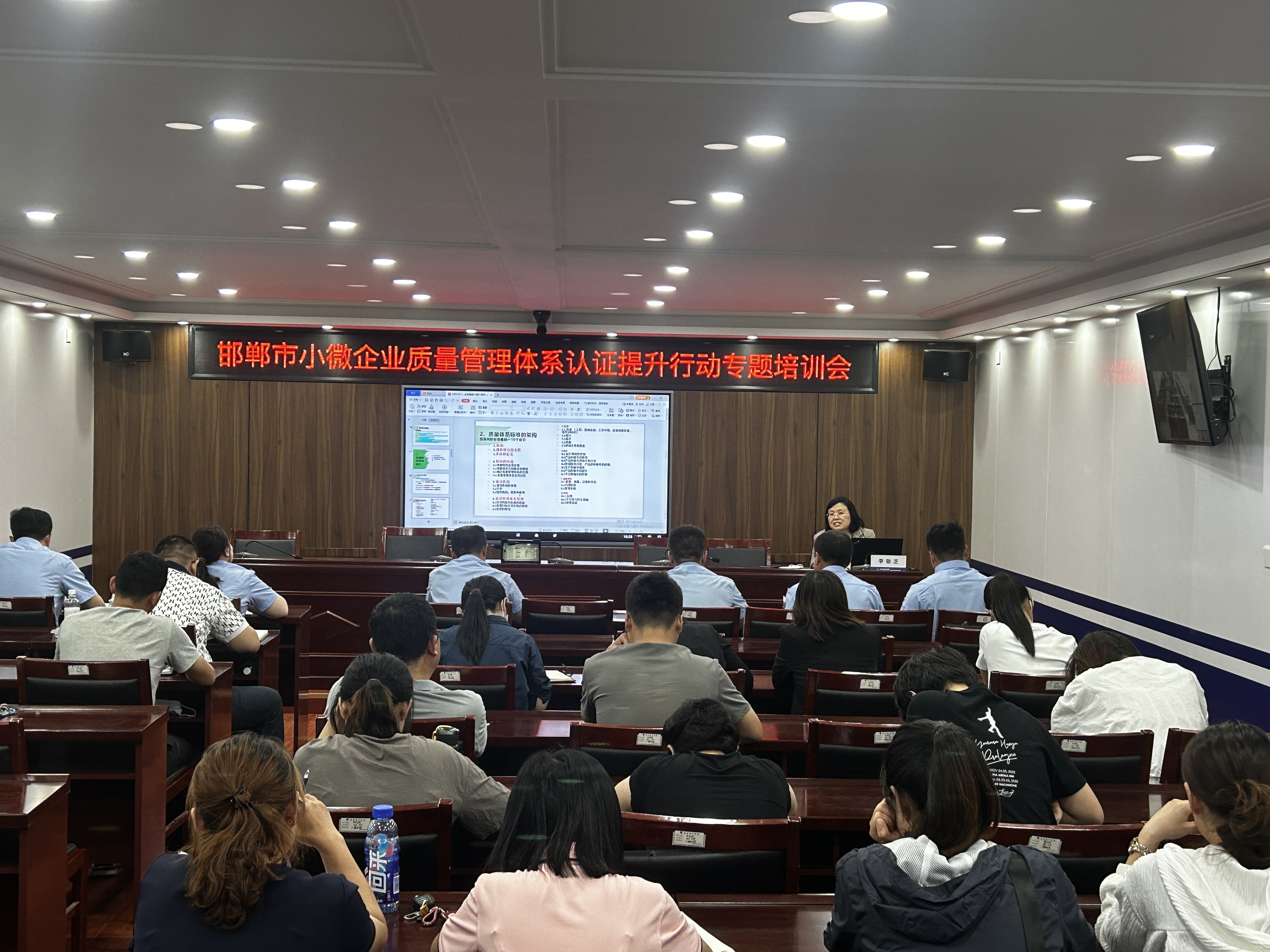2023年5月17日邯郸市市场监督管理局在曲周举办全市小微企业质量管理体系认证提升行动专题培训会。