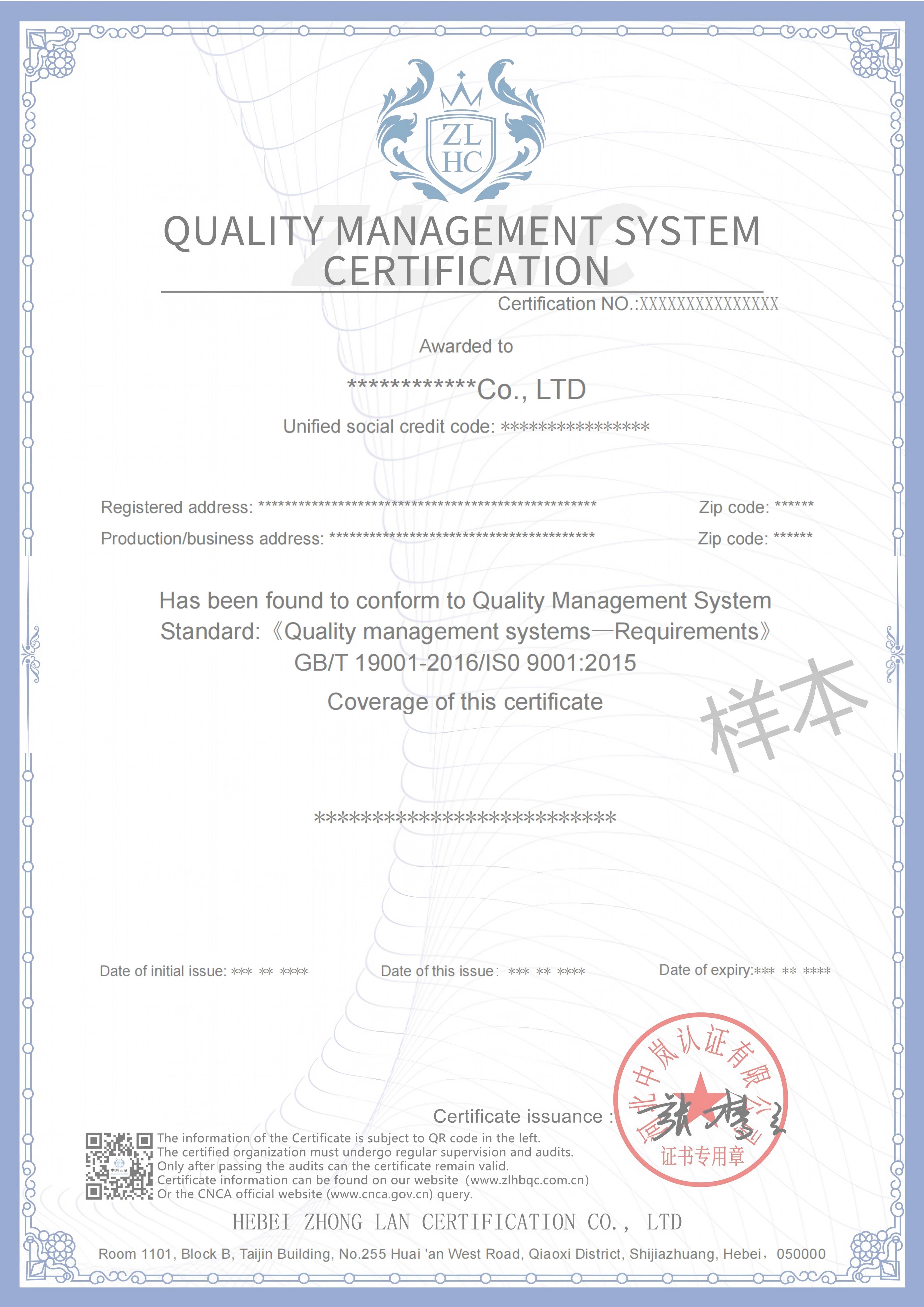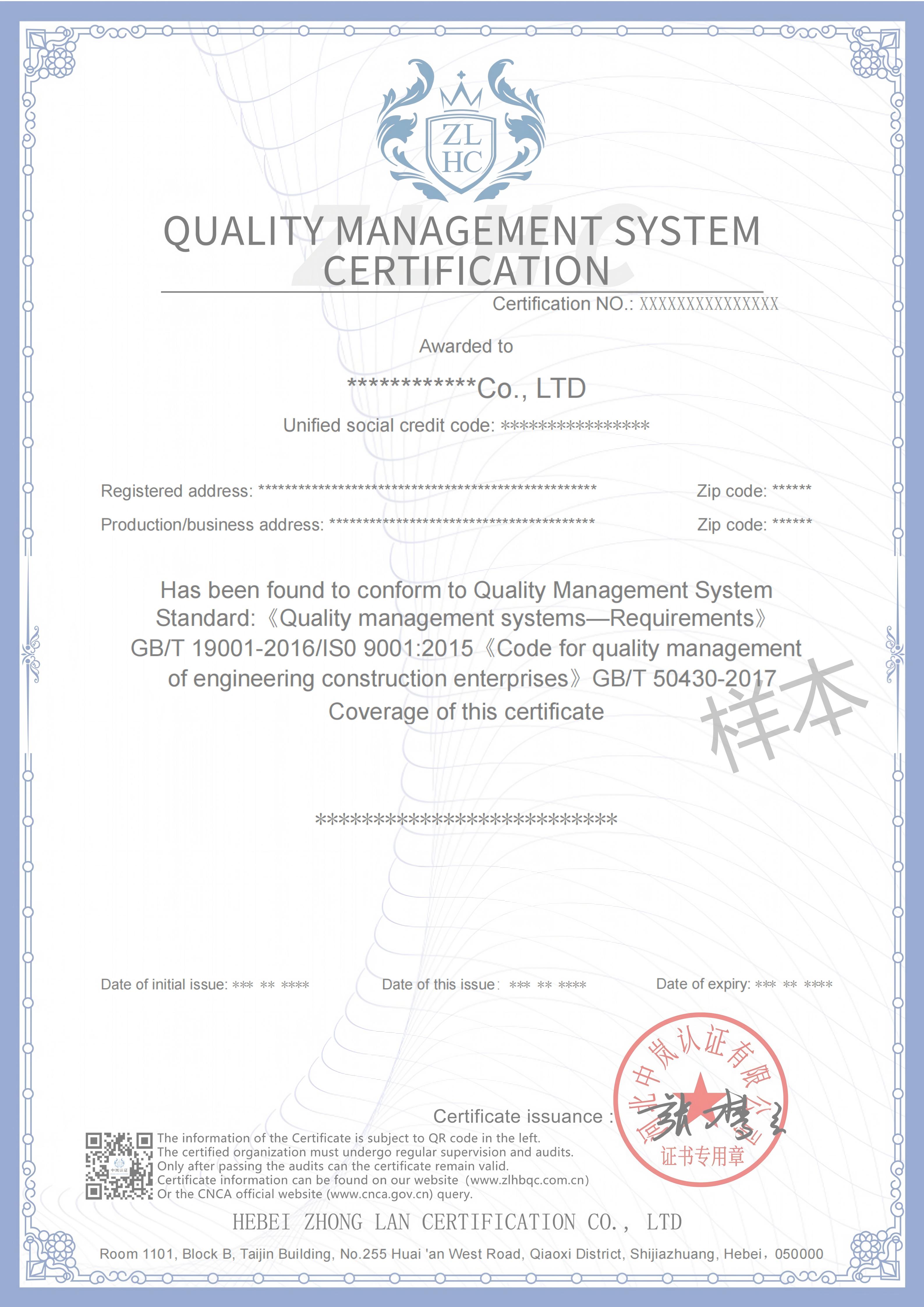 证书样本