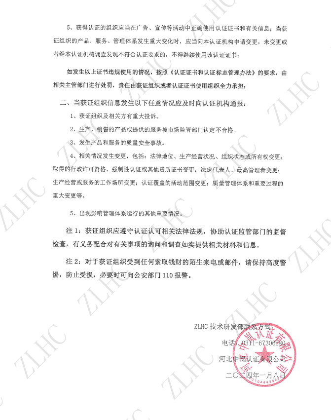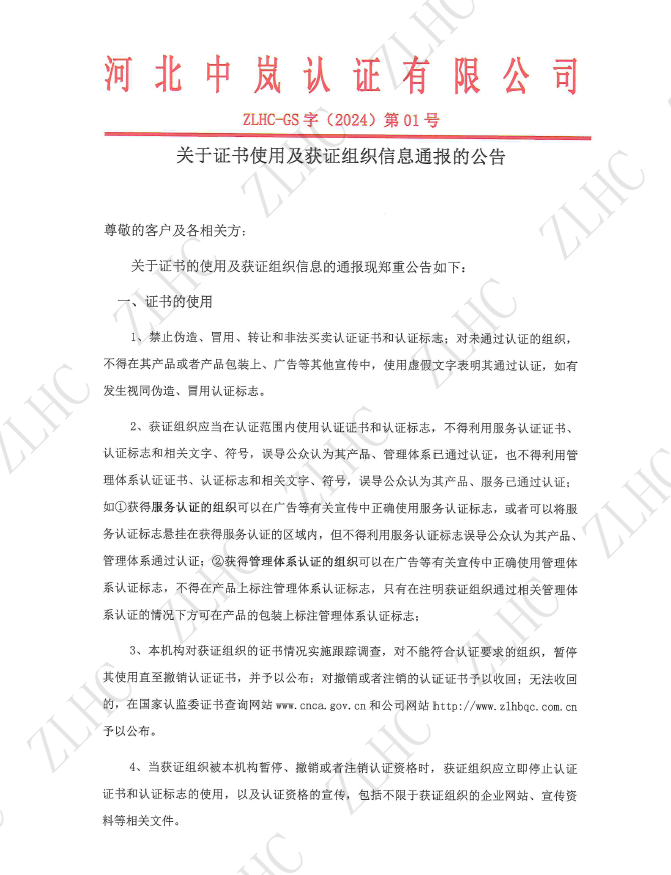 2024年1月8日 关于证书使用及获证组织信息通报的公告