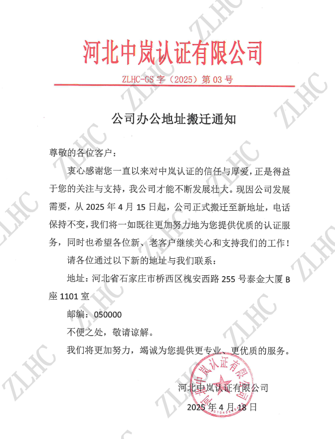 2025年4月18日 公司办公地址搬迁通知