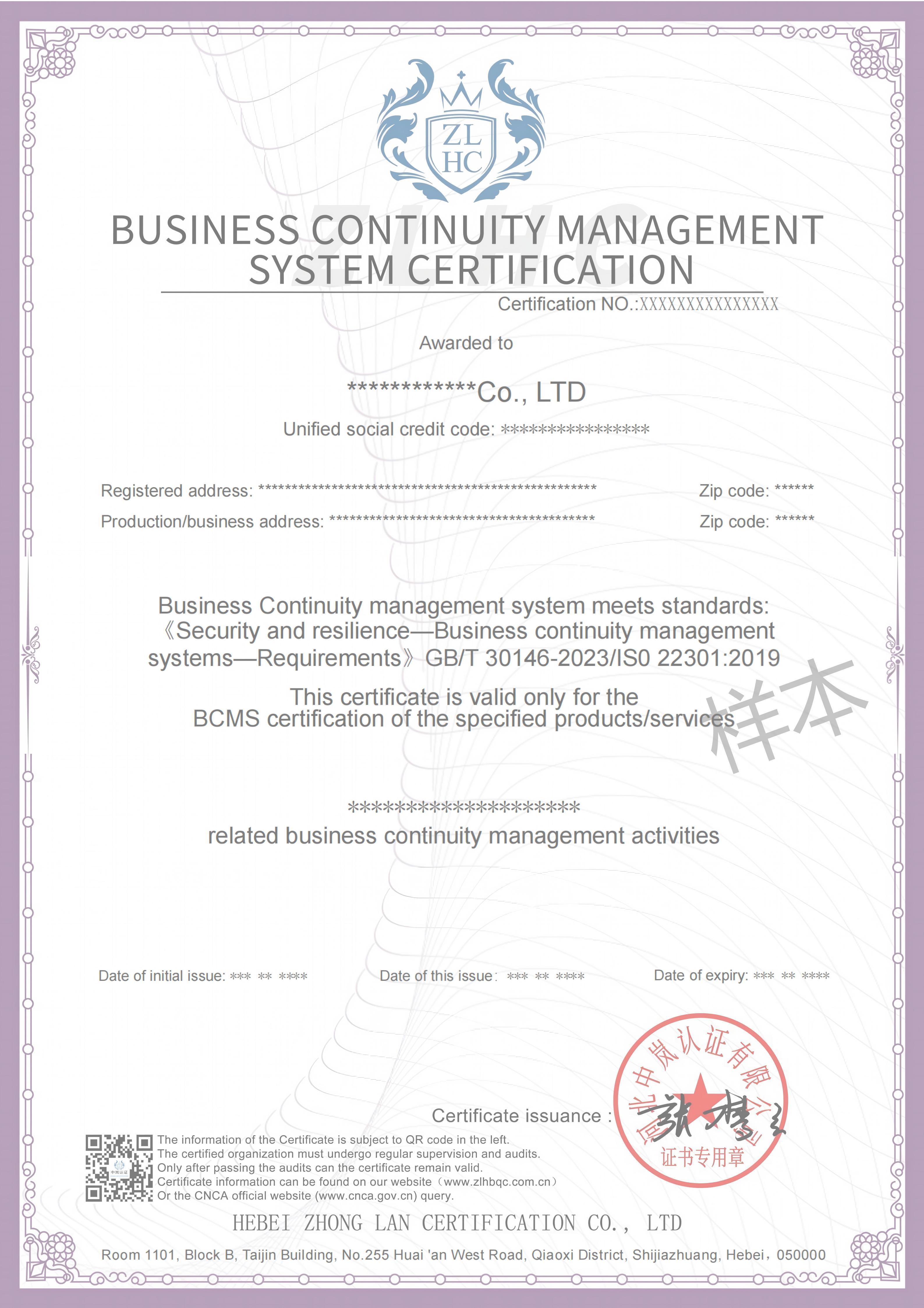 证书样本